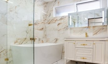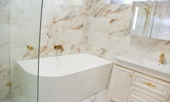 Located in Baulkham Hills, this bathroom renovation project epitomises modern luxury. Featuring opulent golden taps complemented by exquisite marble tiles, the design exudes sophistication. The focus was to craft a lavishly modern space, infusing elegance and style, resulting in a stunning and indulgent bathroom retreat.